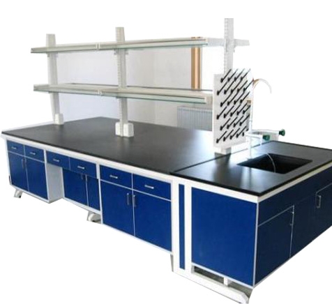 试剂架:采用E1级16mm厚三聚氰胺一次成型板,2mm厚PVC高温热压封 边防水处理;II、与实验台框架一体,搁板为平板钢化玻璃板,设有防滑措施,并可调节高度。